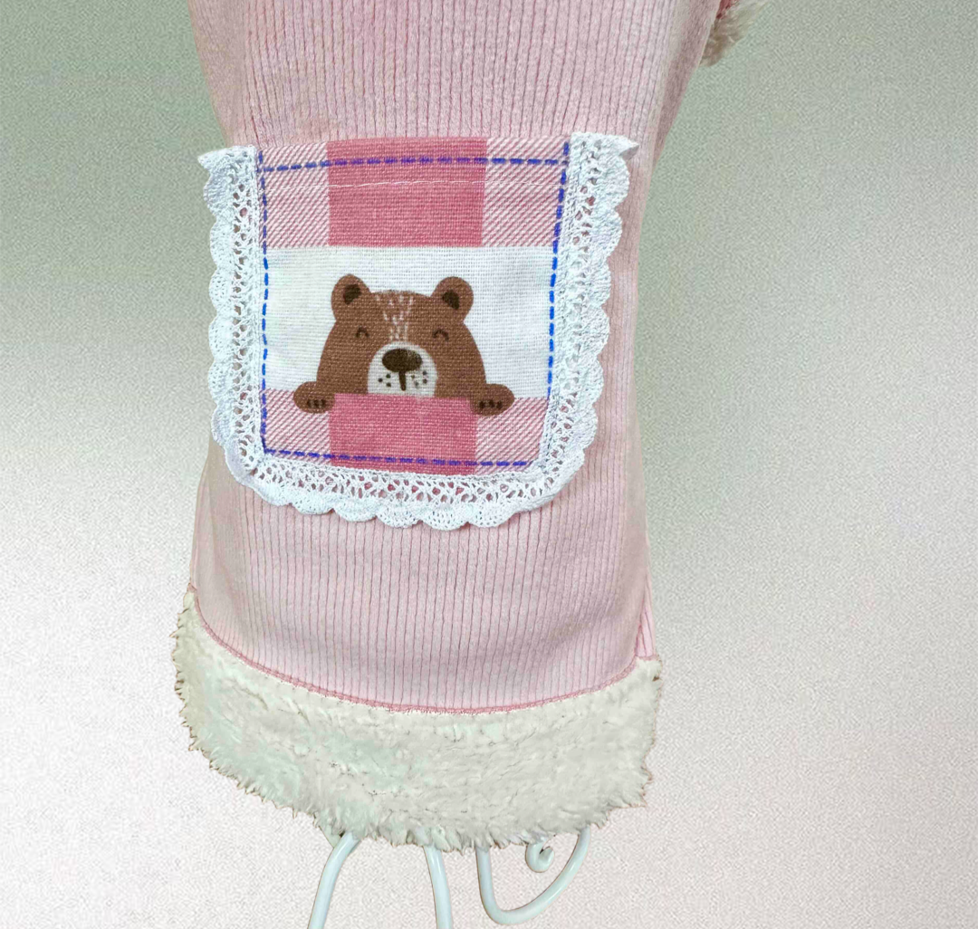 Idealnie nada się tutaj bluza w kolorze różowym, z ciepłym podszyciem polarowym i kieszonką bawełnianą z misiem.