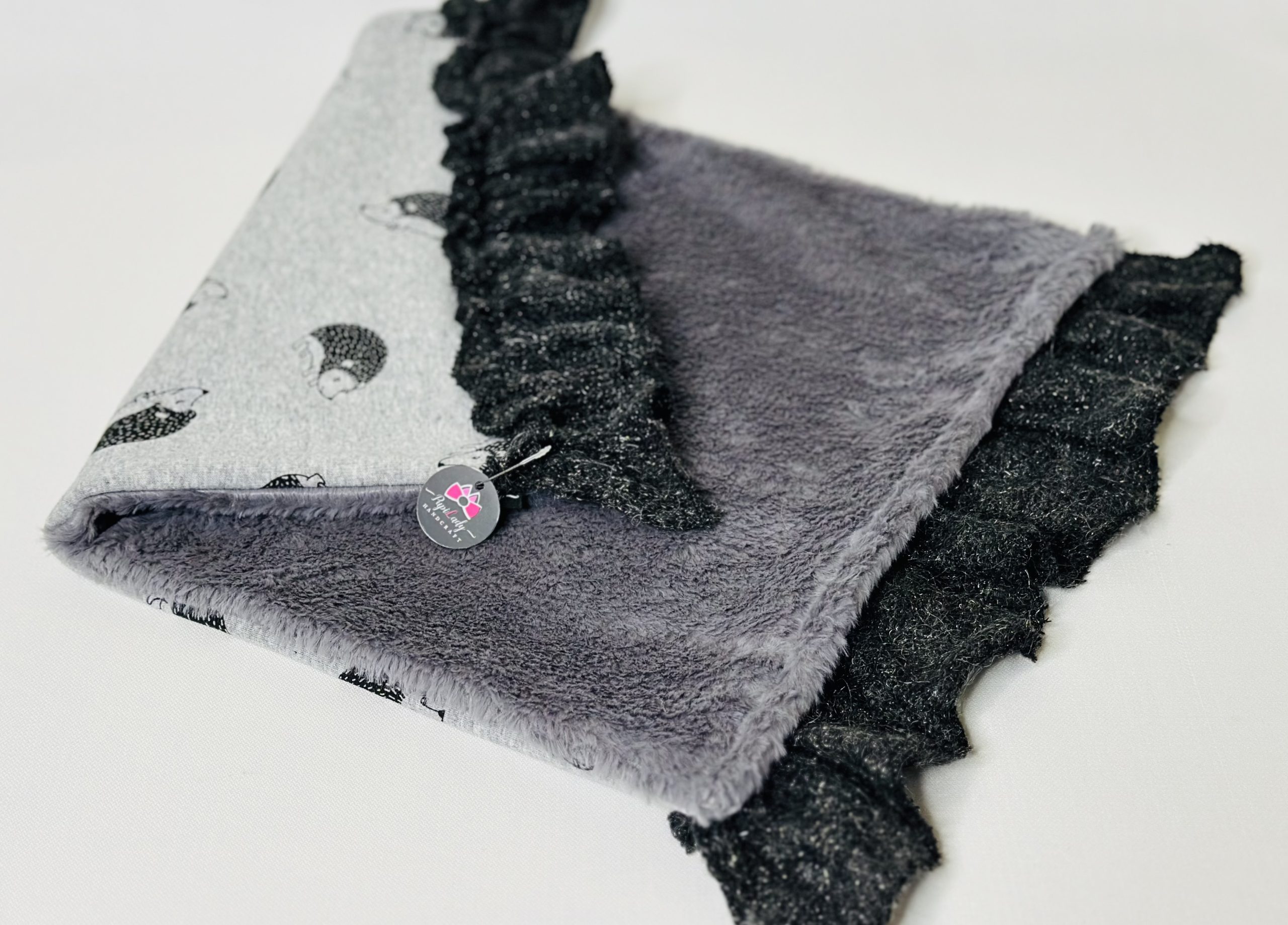 Kocyk z milutkiego futerka w kolorze szarym połączony z cieplutkim polarem w jeżyki.