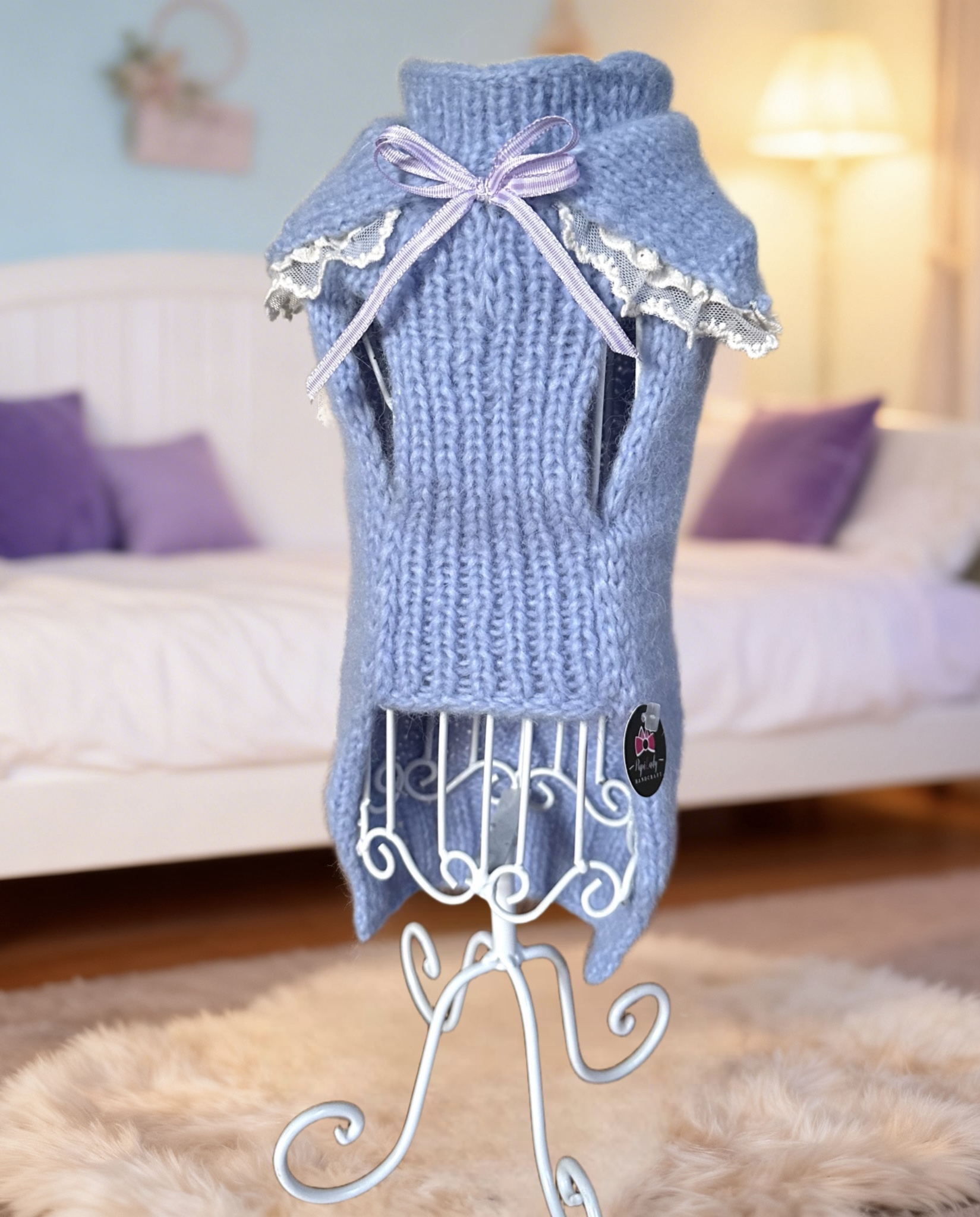 Uroczy sweterek w kolorze niebieskim z włóczki baby alpaka.