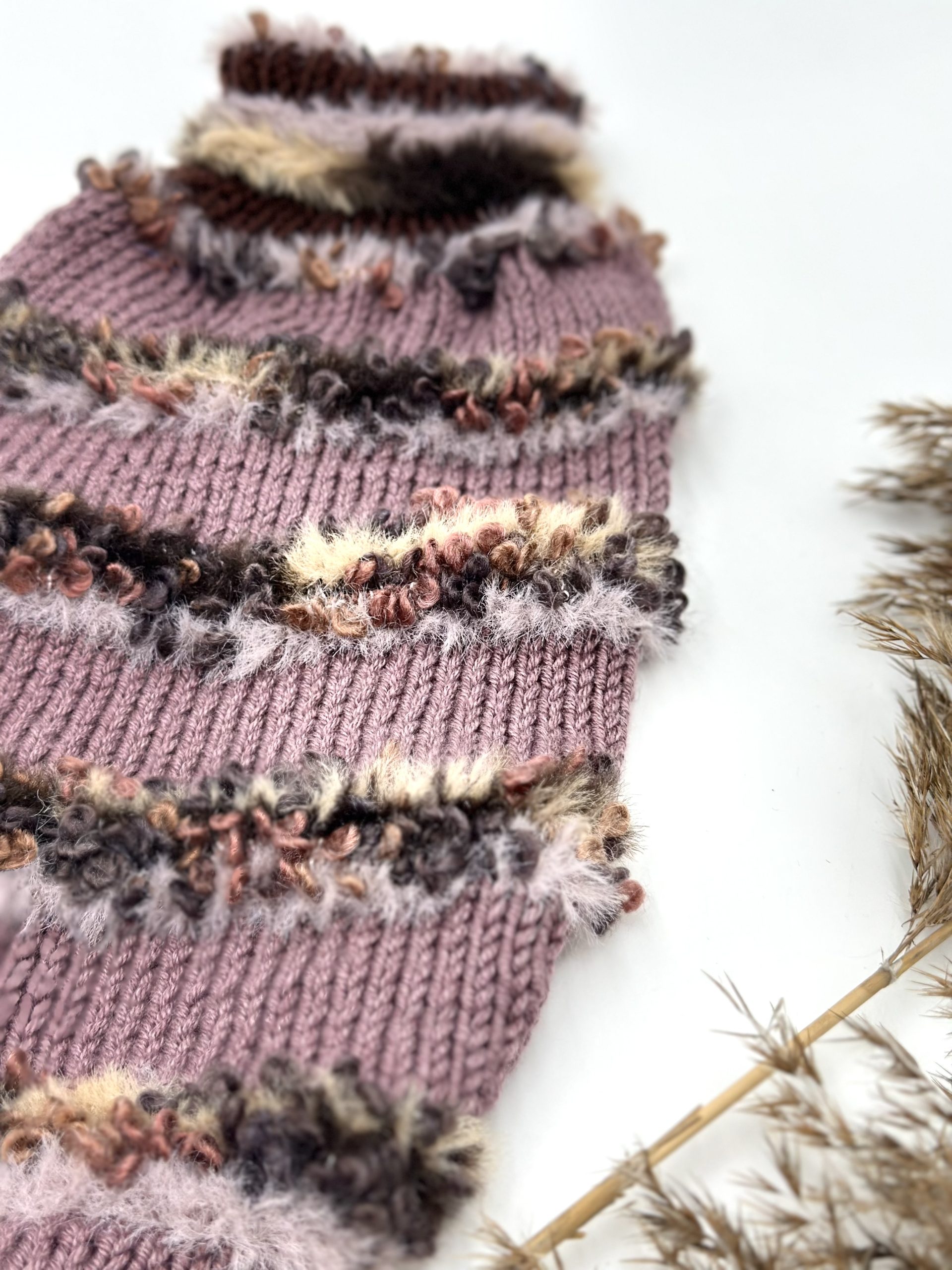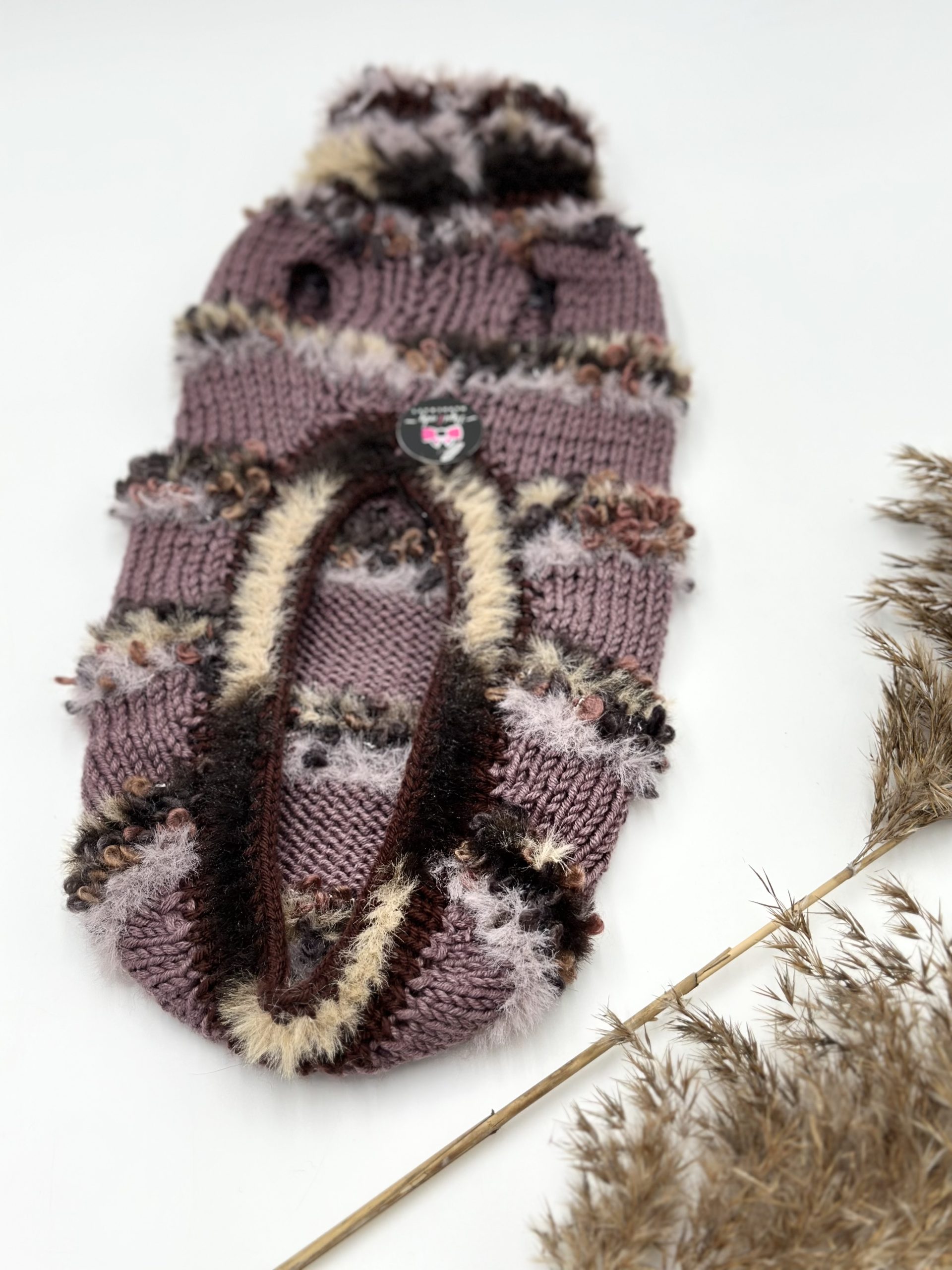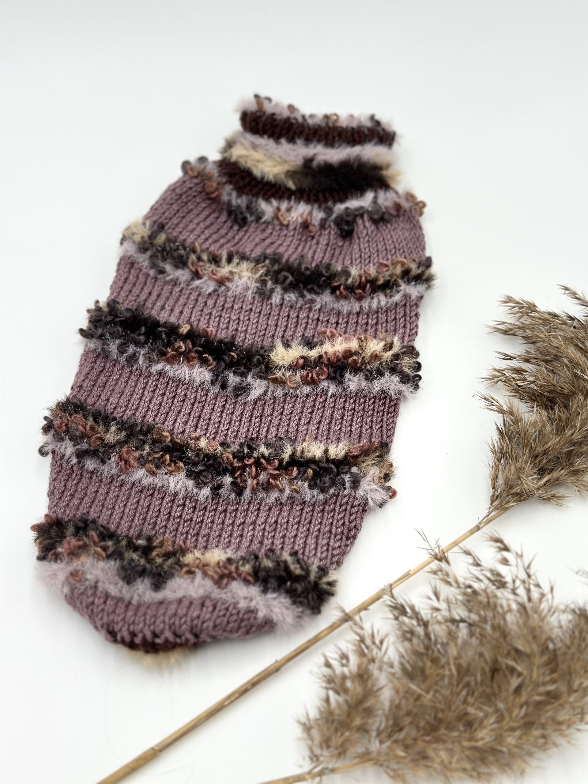 🐶 Brązowy pasiasty sweterek z bawełny i melanżowej bukli to wygoda i naturalny styl!