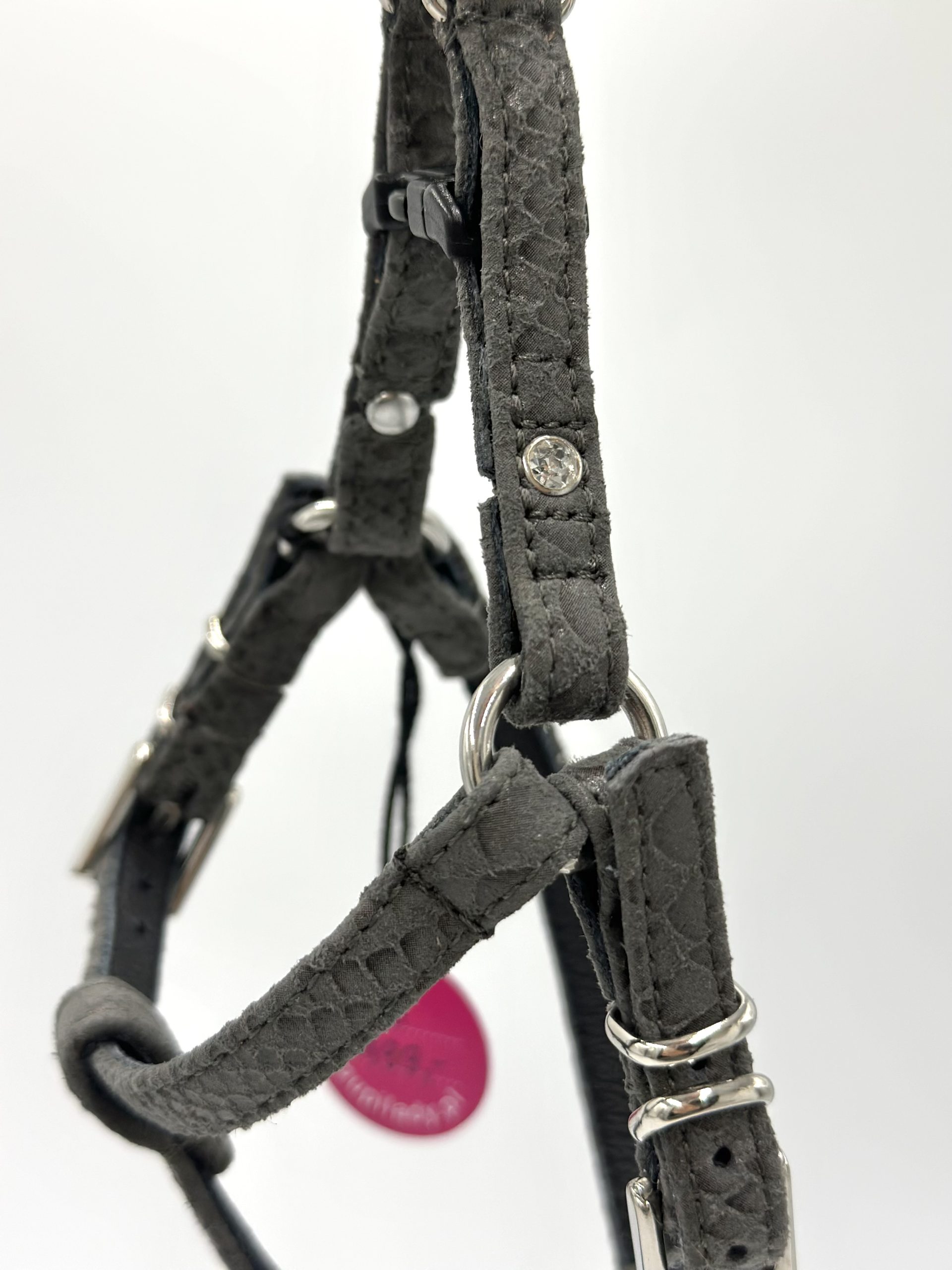 Szelki w kolorze grafitowym o wężowym tłoczeniu!