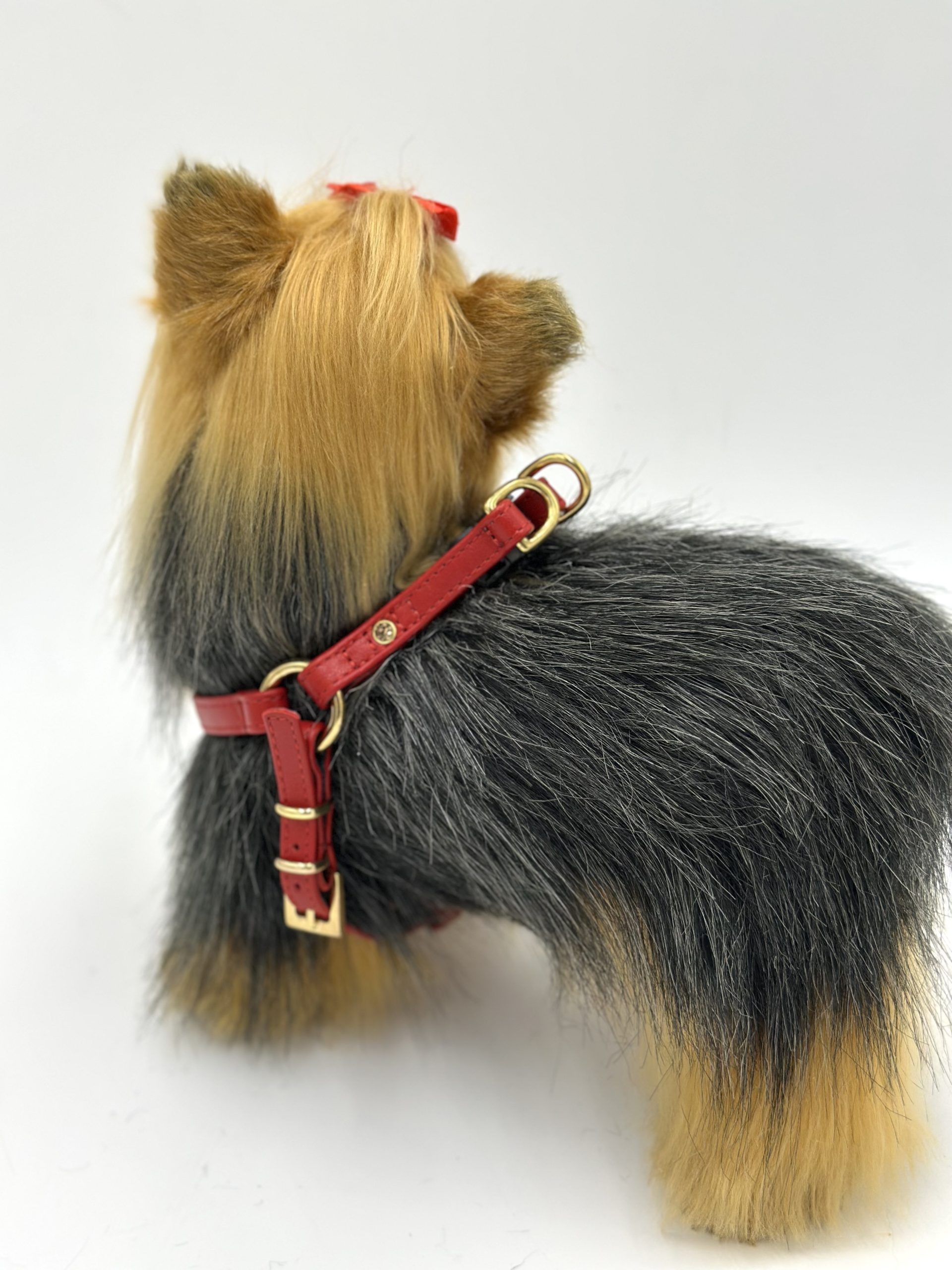 Bardzo mi zależało aby fason szelek nie uciskał krtani podczas spaceru, dlatego przedni pasek układa się poniżej szyi.