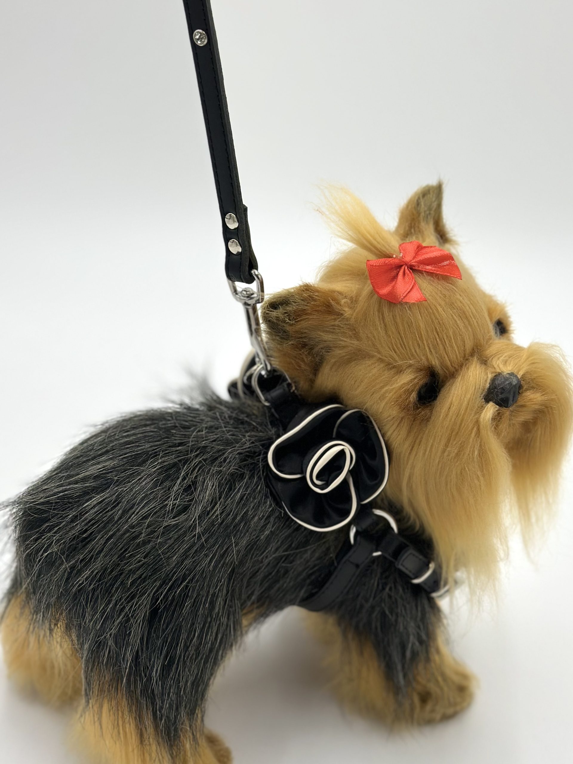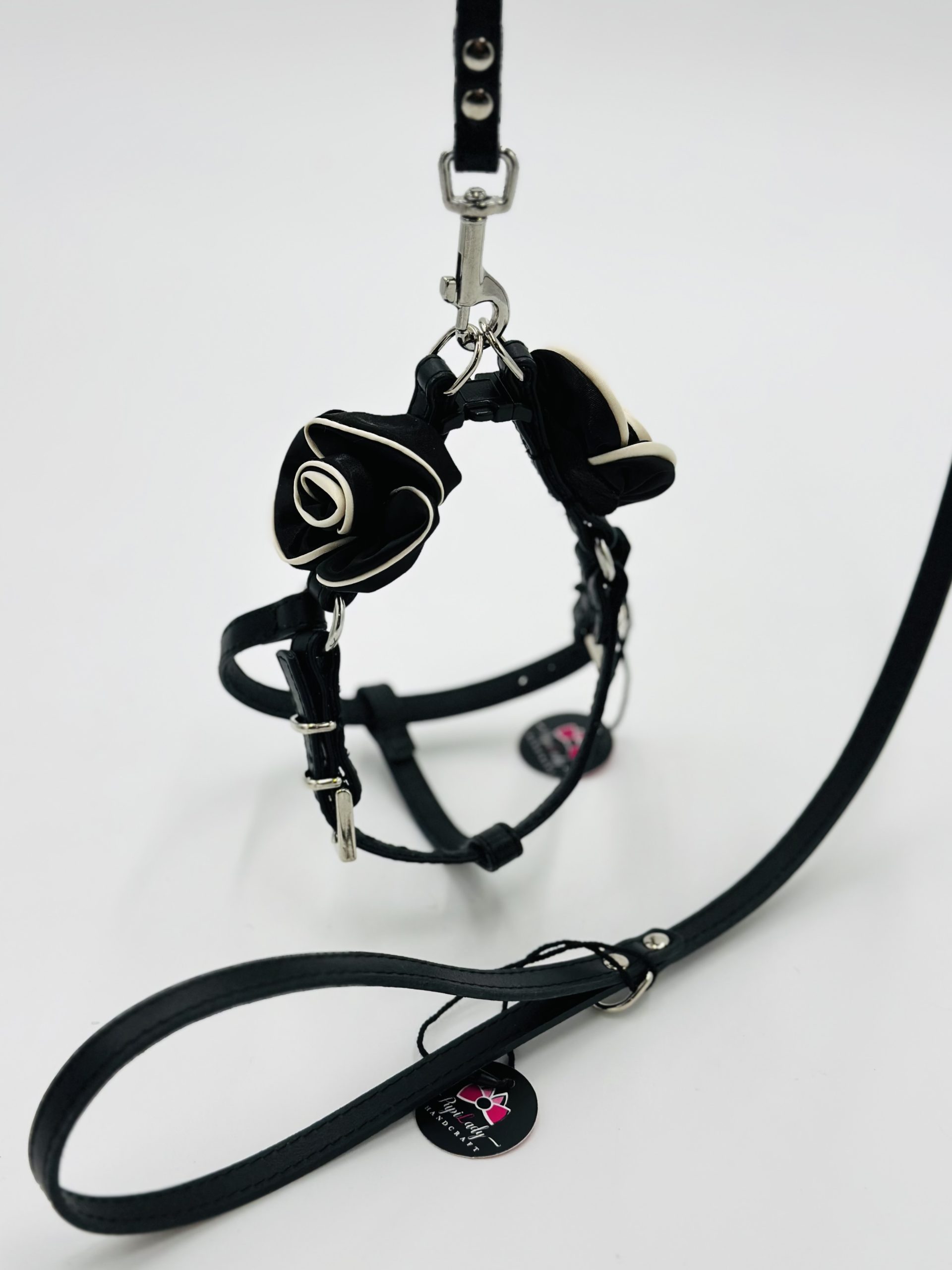 Szelki ze skóry naturalnej SZ 4, czarne z kamelią