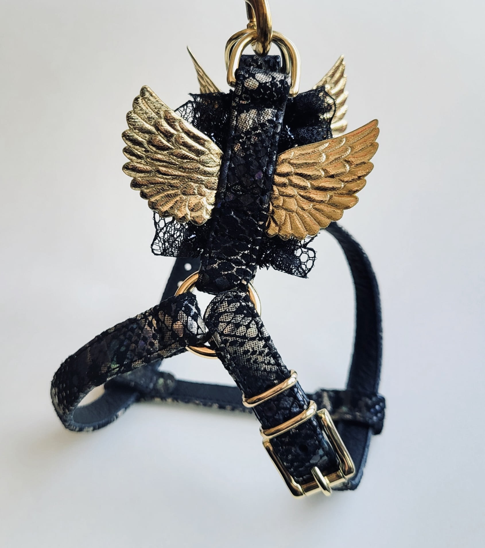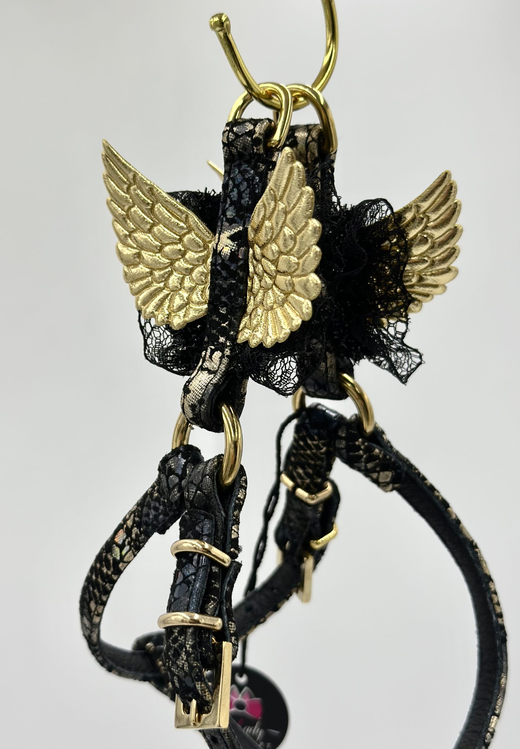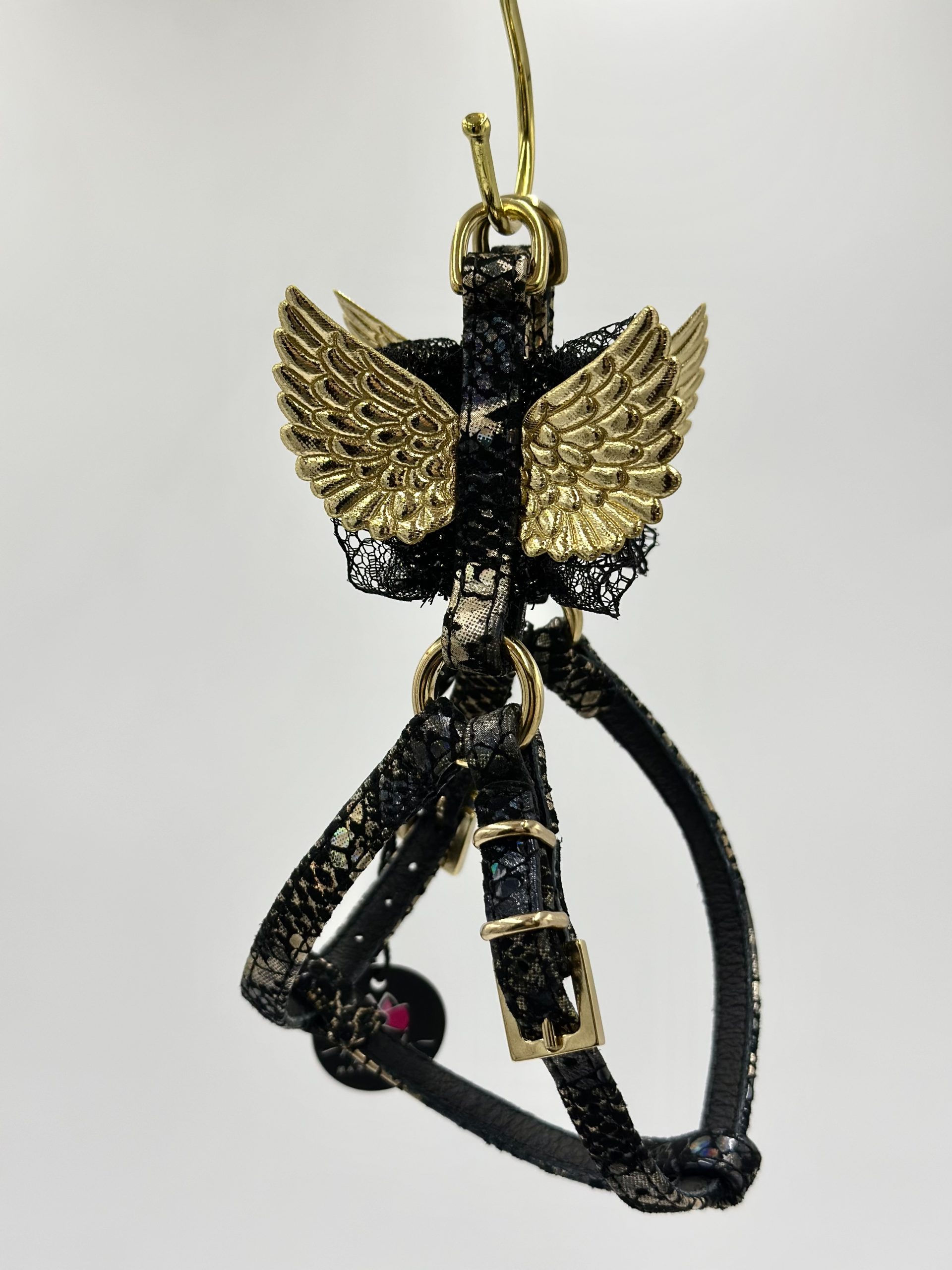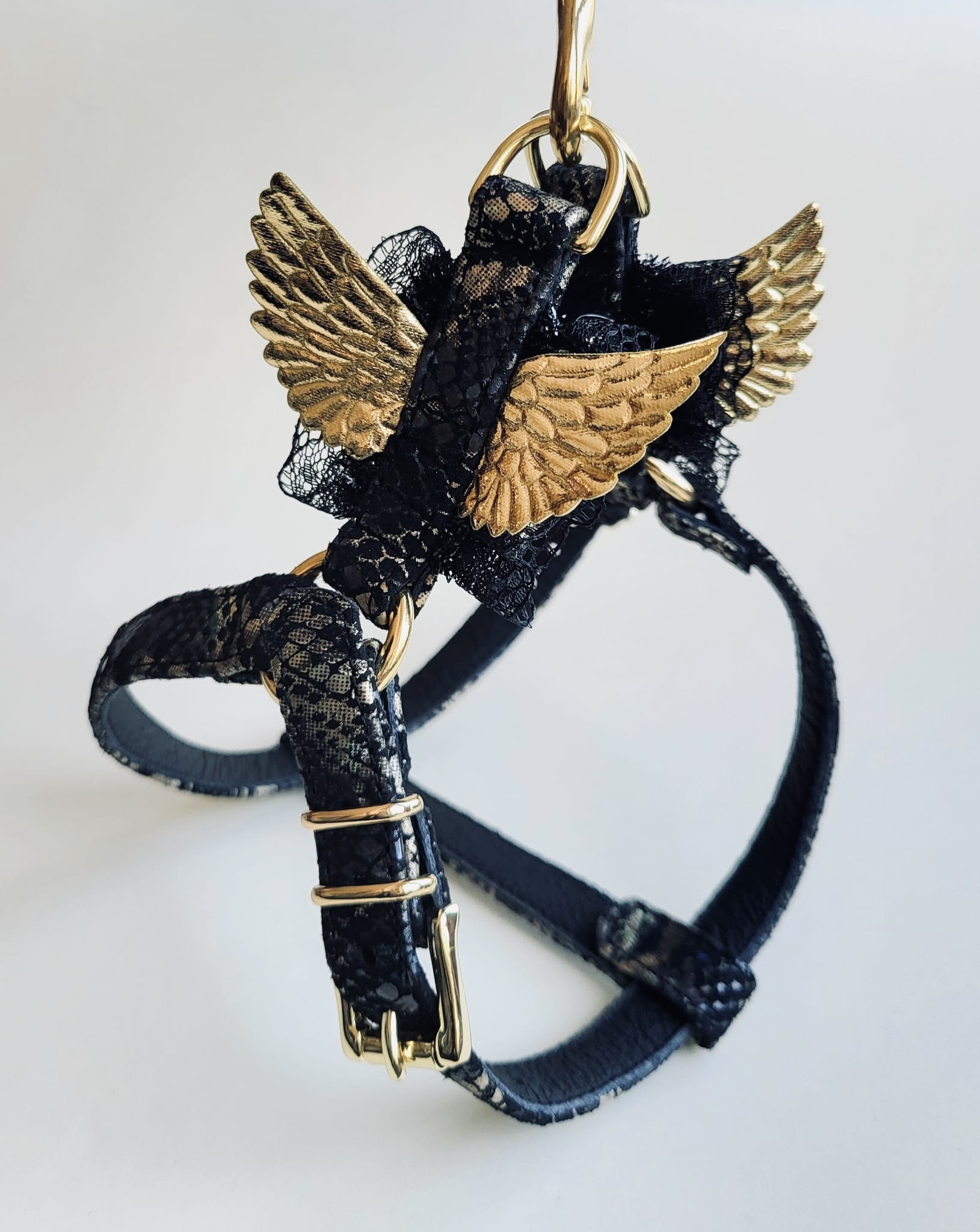 Szelki ze skóry naturalnej SZ 7, czarno/złote